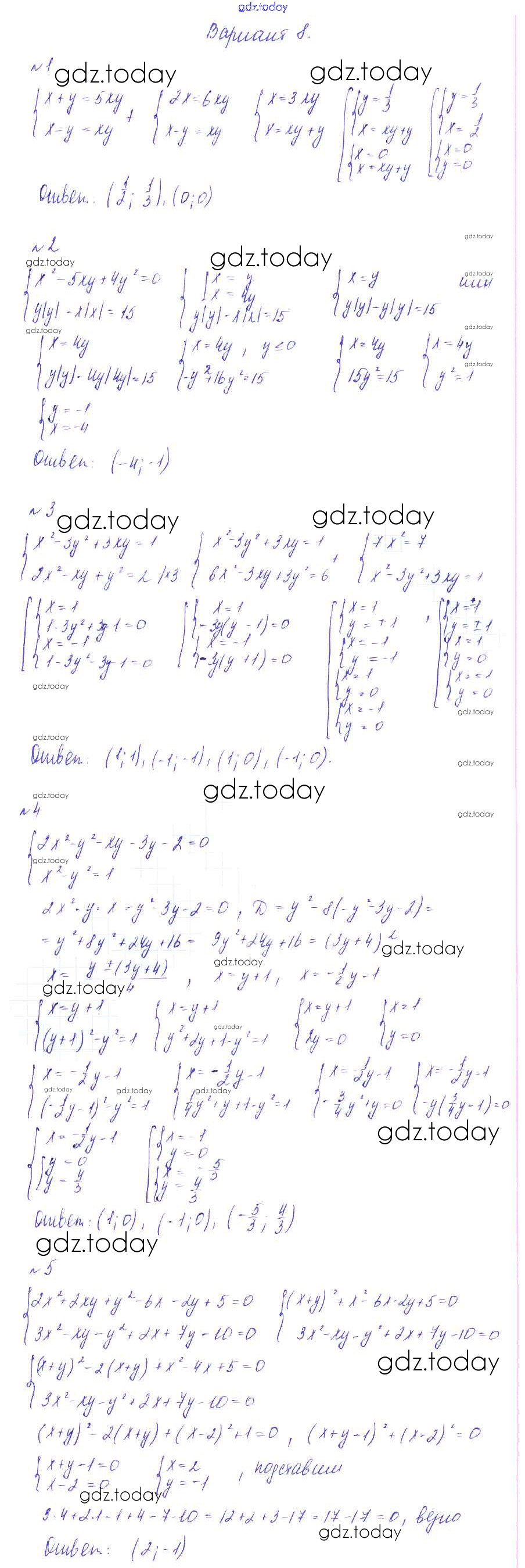 Ответы к СР-3. Системы нелинейных уравнений Решение к самостоятельным работам вариант 8 Дидактическим материалам по Алгебре для 9 класса Зив, Гольдич Виктория плюс 2013