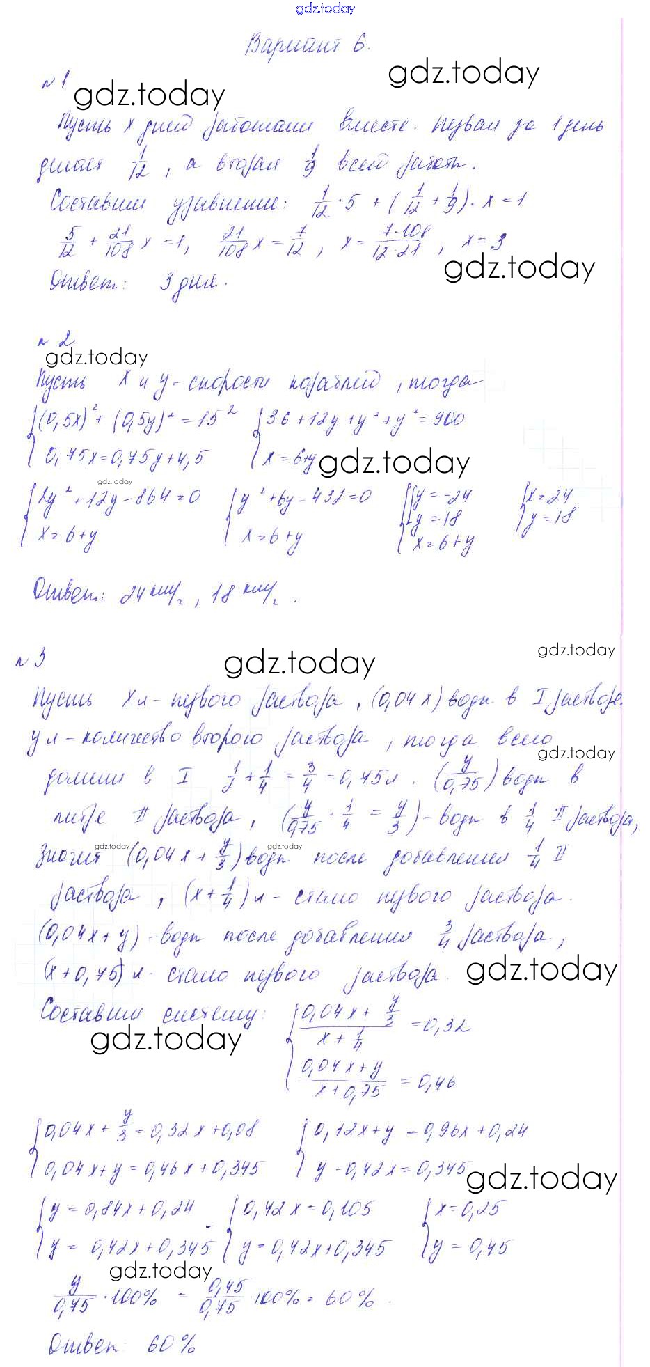 Ответы к СР-4. Решение задач с помощью уравнений Решение к самостоятельным работам вариант 6 Дидактическим материалам по Алгебре для 9 класса Зив, Гольдич Виктория плюс 2013