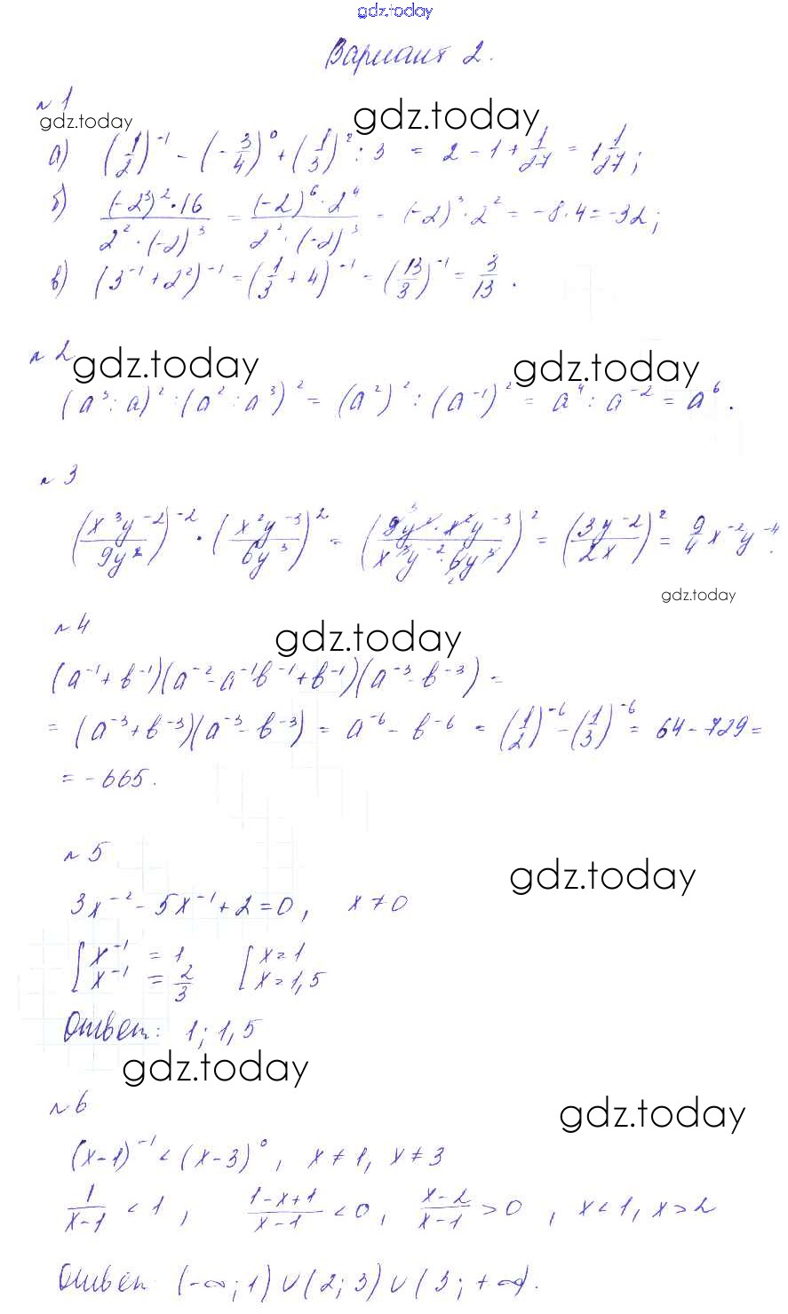 На страницах сайта gdz.today вы найдете учебный и вспомогательный материал, направленный на улучшения знаний школьной программы. ГДЗ - онлайн мир знаний СР-5. Степень с целым показателем Решение к самостоятельным работам вариант 2 Дидактическим материалам по Алгебре для 9 класса Зив, Гольдич Виктория плюс 2013