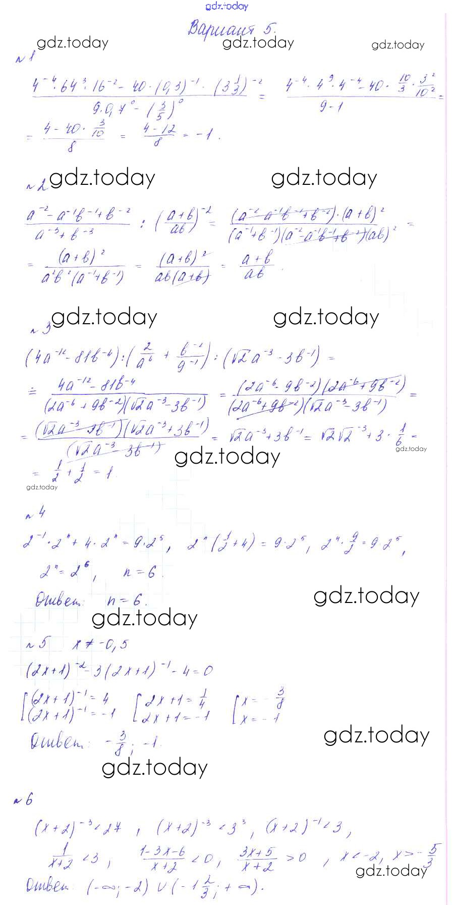 На страницах сайта gdz.today вы найдете учебный и вспомогательный материал, направленный на улучшения знаний школьной программы. ГДЗ - онлайн мир знаний СР-5. Степень с целым показателем Решение к самостоятельным работам вариант 5 Дидактическим материалам по Алгебре для 9 класса Зив, Гольдич Виктория плюс 2013