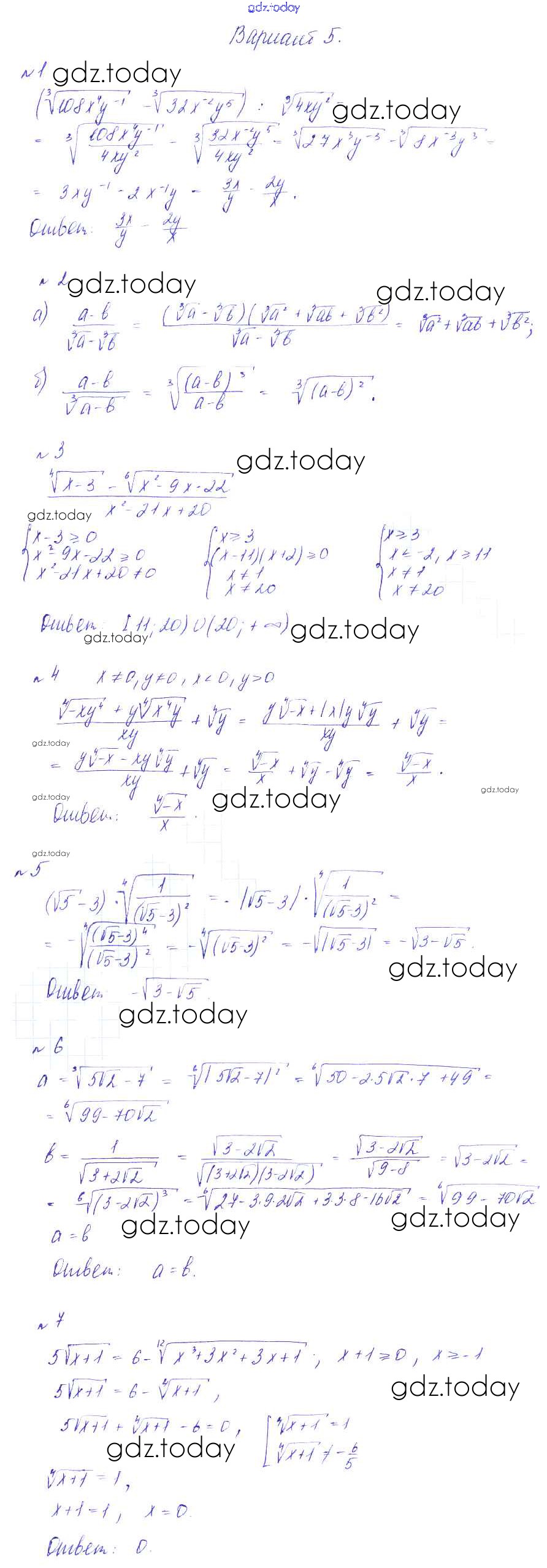 Ответы к СР-6. Корень натуральной степени Решение к самостоятельным работам вариант 5 Дидактическим материалам по Алгебре для 9 класса Зив, Гольдич Виктория плюс 2013