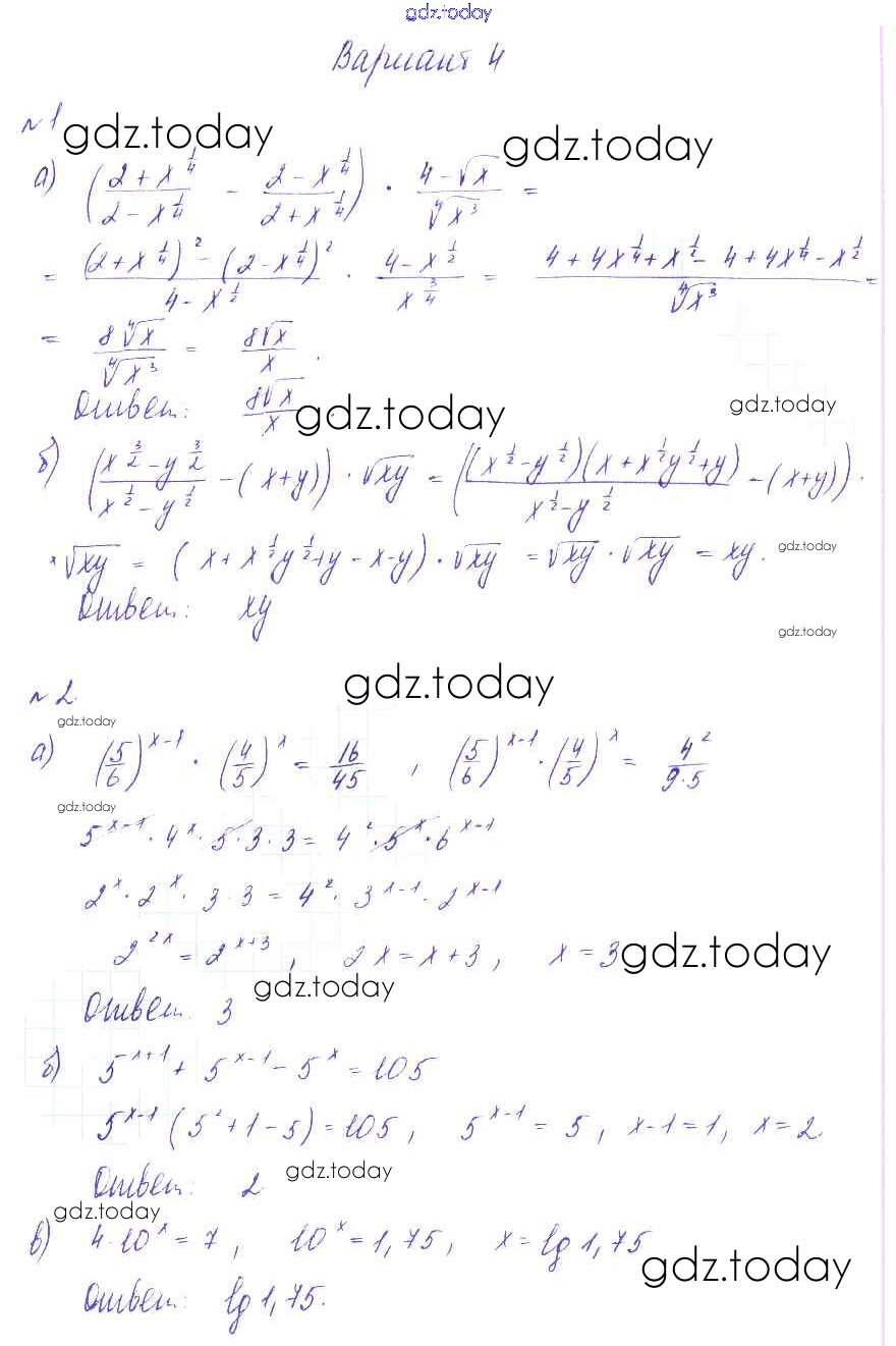 На страницах сайта gdz.today вы найдете учебный и вспомогательный материал, направленный на улучшения знаний школьной программы. ГДЗ - онлайн мир знаний СР-8. Упражнения на все действия над радикалами и степенями Решение к самостоятельным работам вариант 4 Дидактическим материалам по Алгебре для 9 класса Зив, Гольдич Виктория плюс 2013