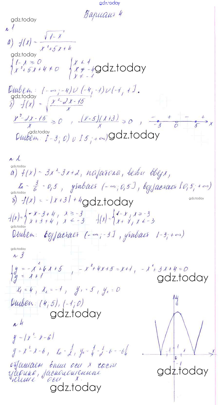 На страницах сайта gdz.today вы найдете учебный и вспомогательный материал, направленный на улучшения знаний школьной программы. ГДЗ - онлайн мир знаний СР-9. Область определения функции. Возрастание и убывание функции Решение к самостоятельным работам вариант 4 Дидактическим материалам по Алгебре для 9 класса Зив, Гольдич Виктория плюс 2013