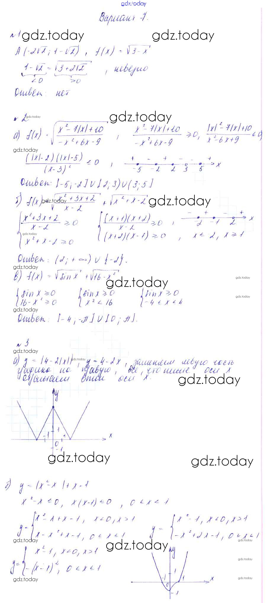 На страницах сайта gdz.today вы найдете учебный и вспомогательный материал, направленный на улучшения знаний школьной программы. ГДЗ - онлайн мир знаний СР-9. Область определения функции. Возрастание и убывание функции Решение к самостоятельным работам вариант 7 Дидактическим материалам по Алгебре для 9 класса Зив, Гольдич Виктория плюс 2013