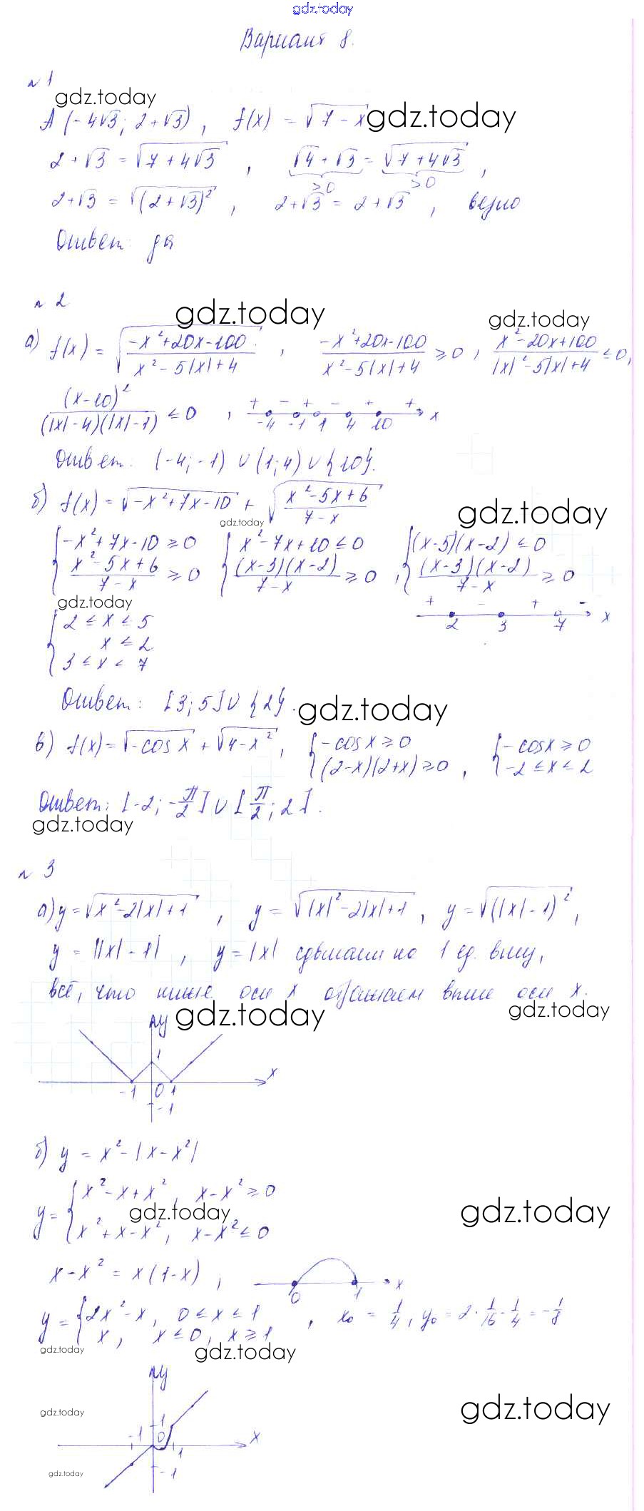 На страницах сайта gdz.today вы найдете учебный и вспомогательный материал, направленный на улучшения знаний школьной программы. ГДЗ - онлайн мир знаний СР-9. Область определения функции. Возрастание и убывание функции Решение к самостоятельным работам вариант 8 Дидактическим материалам по Алгебре для 9 класса Зив, Гольдич Виктория плюс 2013
