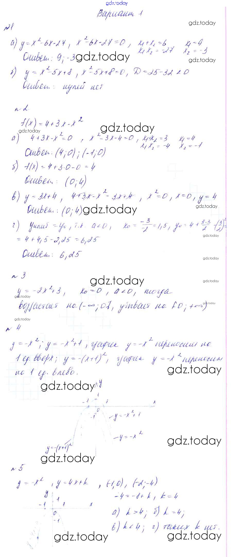 На страницах сайта gdz.today вы найдете учебный и вспомогательный материал, направленный на улучшения знаний школьной программы. ГДЗ - онлайн мир знаний КР-2 Решение к контрольным работам вариант 1 Дидактическим материалам по Алгебре для 9 класса Звавич, Дьяконова Экзамен УМК 2017