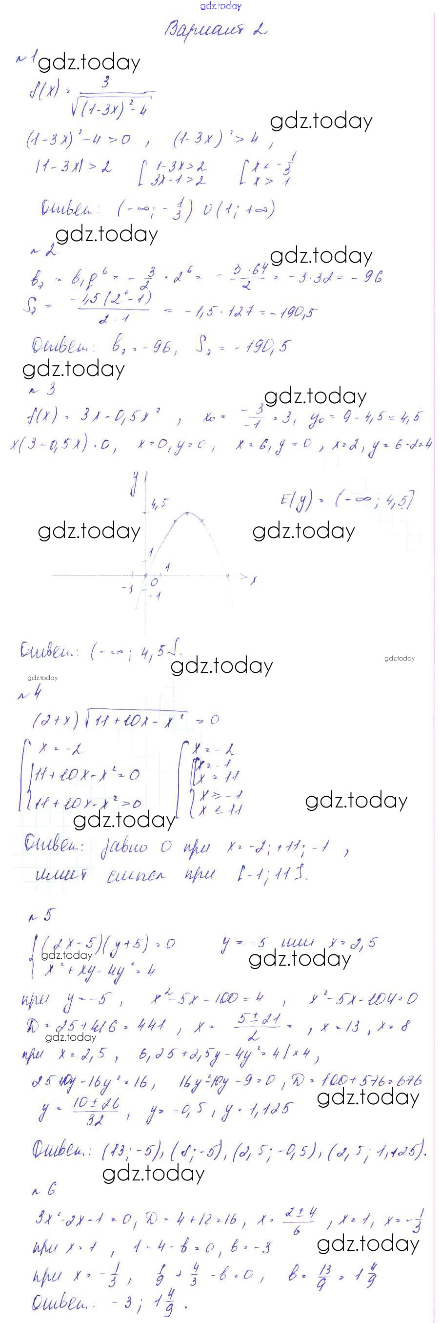 На страницах сайта gdz.today вы найдете учебный и вспомогательный материал, направленный на улучшения знаний школьной программы. ГДЗ - онлайн мир знаний КР-9 Решение к контрольным работам вариант 2 Дидактическим материалам по Алгебре для 9 класса Звавич, Дьяконова Экзамен УМК 2017