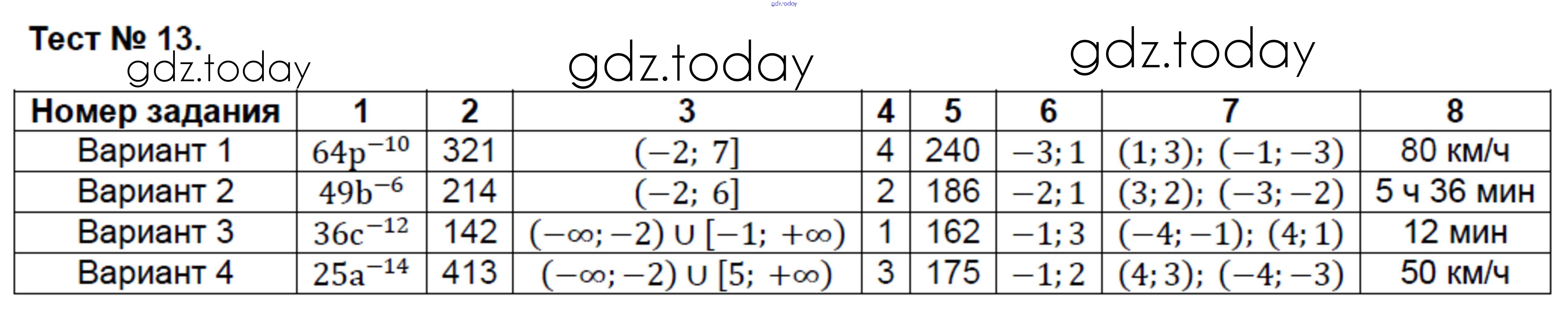 Ответы к Решение к тестам №13 Контрольно-измерительным материалам (КИМ) по Алгебре для 9 класса Глазков, Гаиашвили Экзамен 2014