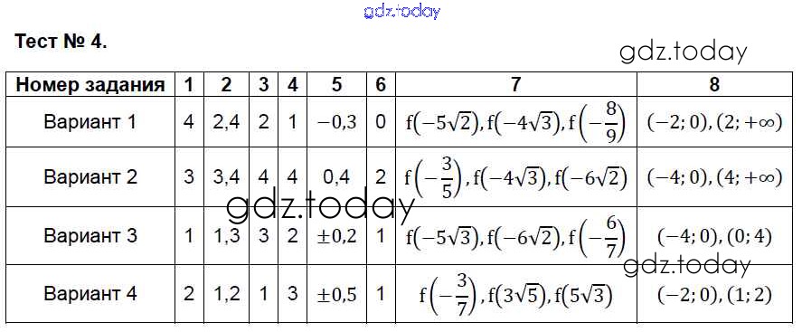 Ответы к Решение к тестам №4 Контрольно-измерительным материалам (КИМ) по Алгебре для 9 класса Глазков, Гаиашвили Экзамен 2014