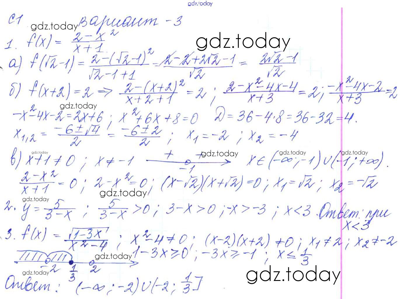 На страницах сайта gdz.today вы найдете учебный и вспомогательный материал, направленный на улучшения знаний школьной программы. ГДЗ - онлайн мир знаний С-1. Функции и их свойства Решение к самостоятельным работам Вариант №3 Контрольным и самостоятельным работам по Алгебре для 9 класса Журавлев, Малышева Экзамен УМК 2016