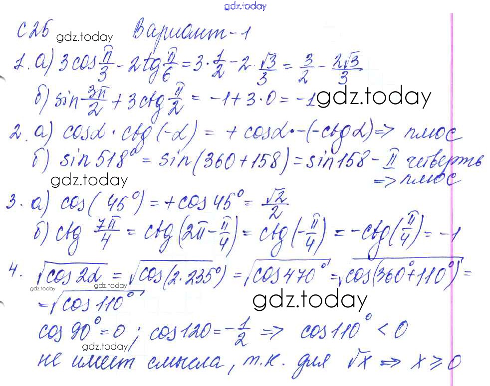 На страницах сайта gdz.today вы найдете учебный и вспомогательный материал, направленный на улучшения знаний школьной программы. ГДЗ - онлайн мир знаний С-25. Свойства тригонометрических функций Решение к самостоятельным работам Вариант №1 Контрольным и самостоятельным работам по Алгебре для 9 класса Журавлев, Малышева Экзамен УМК 2016