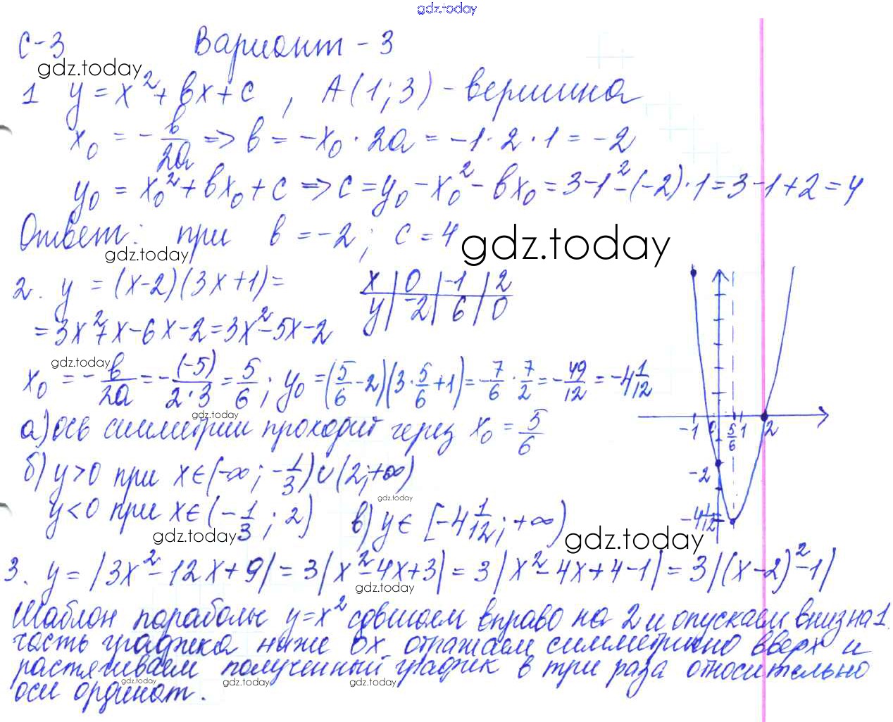 На страницах сайта gdz.today вы найдете учебный и вспомогательный материал, направленный на улучшения знаний школьной программы. ГДЗ - онлайн мир знаний С-3. График квадратичной функции Решение к самостоятельным работам Вариант №3 Контрольным и самостоятельным работам по Алгебре для 9 класса Журавлев, Малышева Экзамен УМК 2016