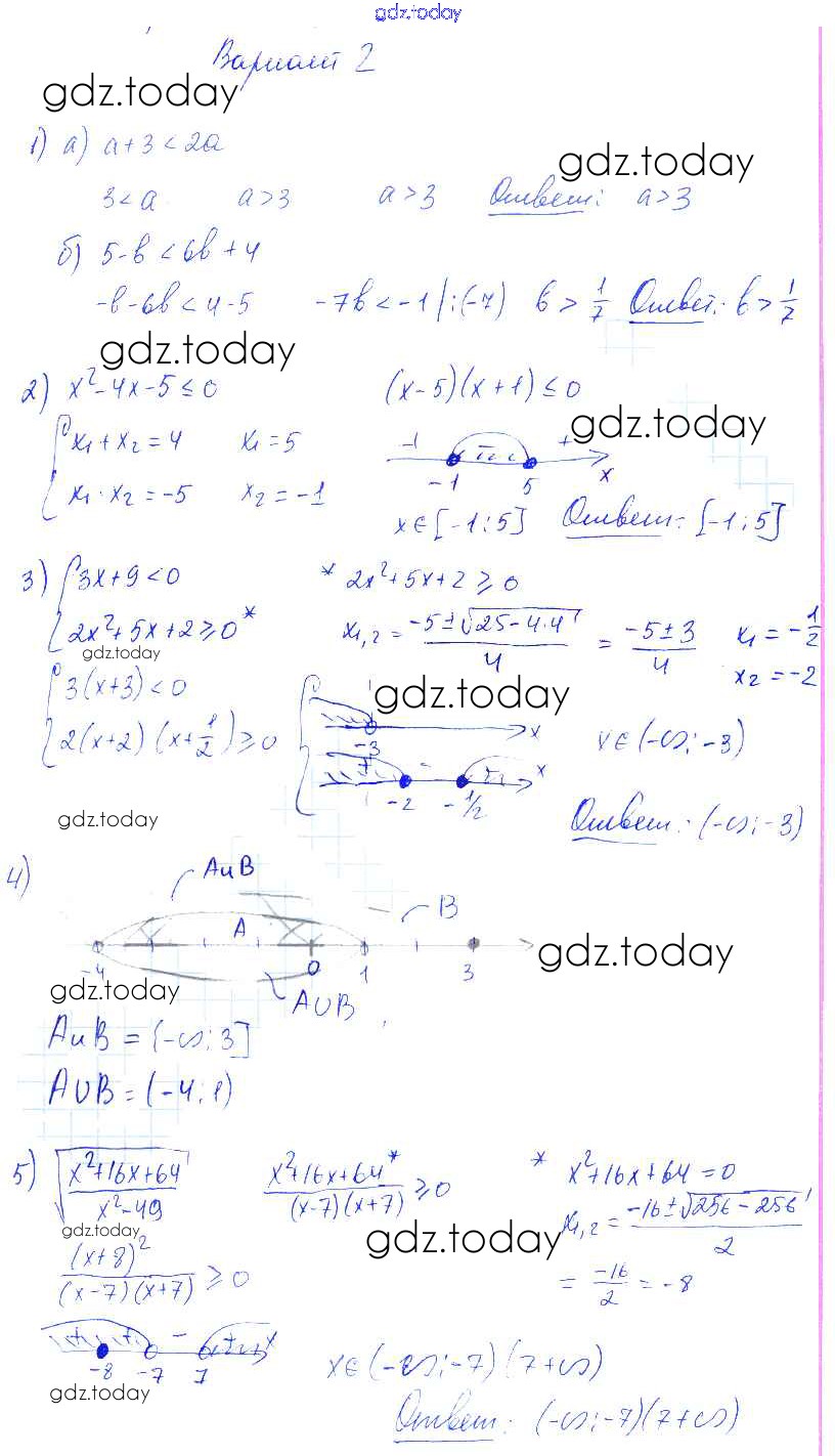 Ответы к КР-1. Рациональные неравенства и их системы Решение к контрольным работам Вариант 2 Контрольным и самостоятельным работам по Алгебре для 9 класса Попов Экзамен УМК 2011