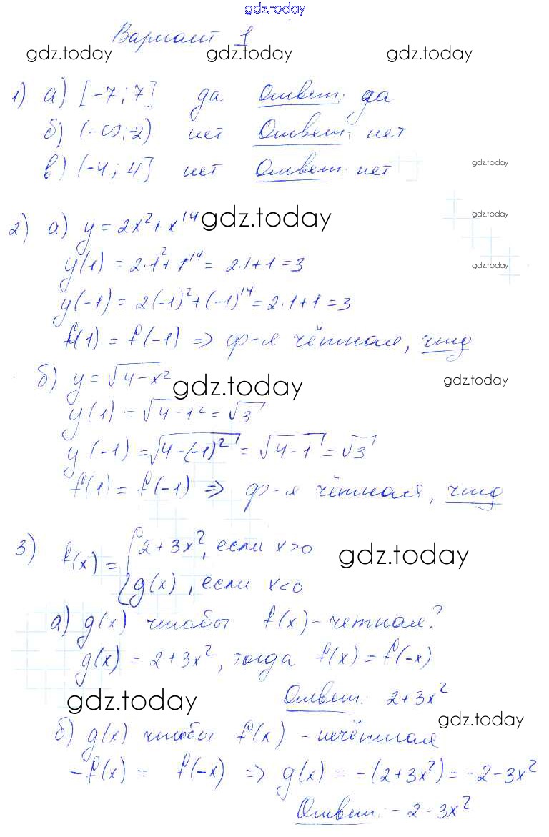 На страницах сайта gdz.today вы найдете учебный и вспомогательный материал, направленный на улучшения знаний школьной программы. ГДЗ - онлайн мир знаний СР-12. Четные и нечетные функции Решение к самостоятельным работам Вариант 1 Контрольным и самостоятельным работам по Алгебре для 9 класса Попов Экзамен УМК 2011