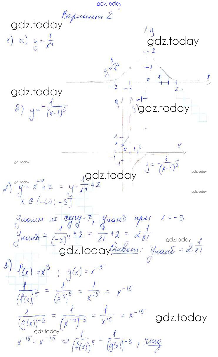 На страницах сайта gdz.today вы найдете учебный и вспомогательный материал, направленный на улучшения знаний школьной программы. ГДЗ - онлайн мир знаний СР-14. Функции y=x-n(n є N) их свойства и графики Решение к самостоятельным работам Вариант 2 Контрольным и самостоятельным работам по Алгебре для 9 класса Попов Экзамен УМК 2011