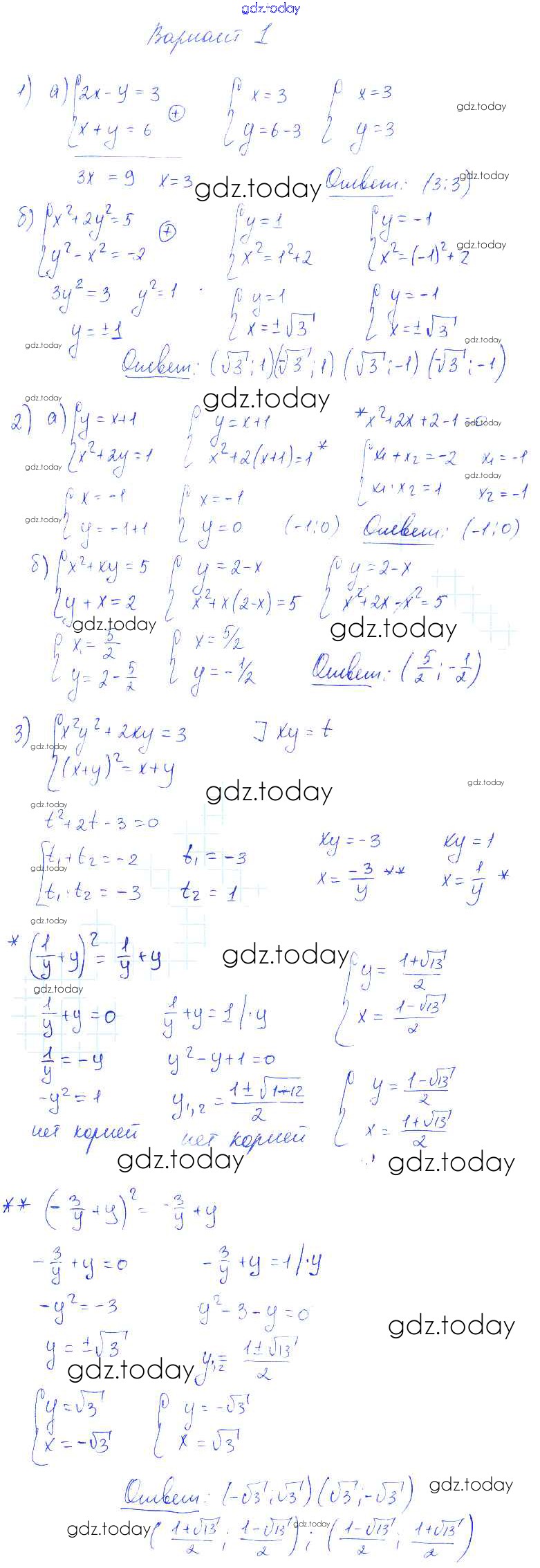 Ответы к СР-7. Методы решения систем уравнений Решение к самостоятельным работам Вариант 1 Контрольным и самостоятельным работам по Алгебре для 9 класса Попов Экзамен УМК 2011