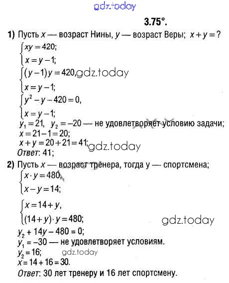 Ответы к Решение к глава 3 3.75 Учебнику по Алгебре для 9 класса Кузнецова, Муравьева Народная асвета 2015