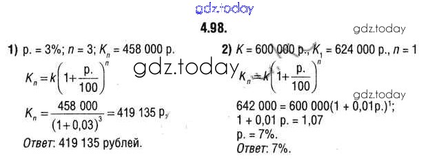 Ответы к Решение к глава 4 4.98 Учебнику по Алгебре для 9 класса Кузнецова, Муравьева Народная асвета 2015