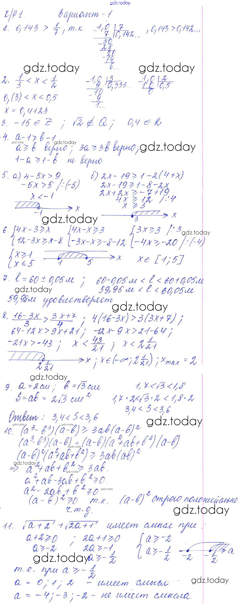Ответы к Решение к КР-1. Неравенства вариант №1 Контрольным работам по Алгебре для 9 класса Кузнецова, Минаева Просвещение 2016