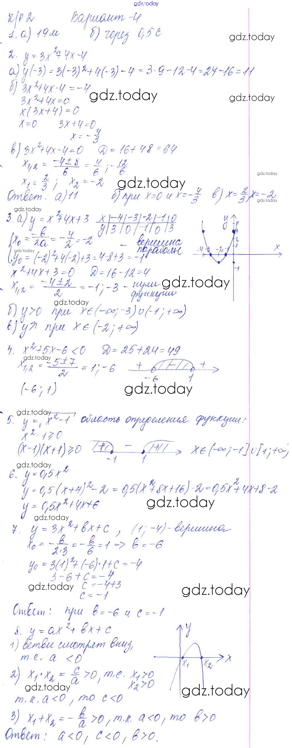 Ответы к Решение к КР-2. Квадратичная функция вариант №4 Контрольным работам по Алгебре для 9 класса Кузнецова, Минаева Просвещение 2016