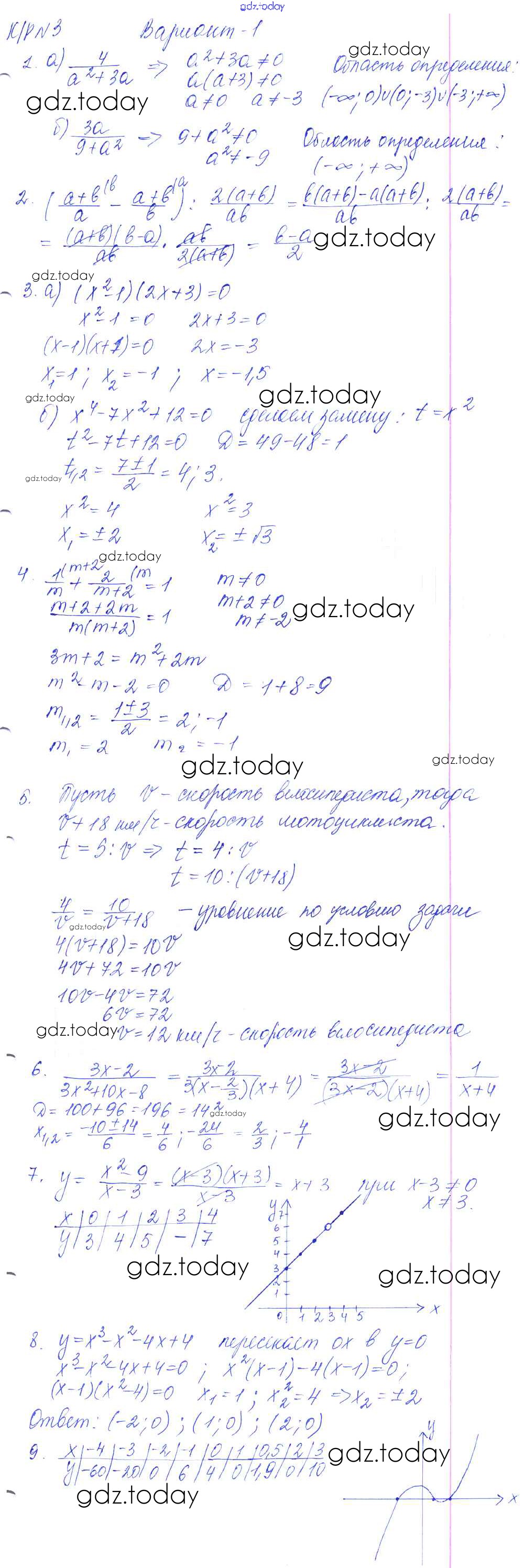 На страницах сайта gdz.today вы найдете учебный и вспомогательный материал, направленный на улучшения знаний школьной программы. ГДЗ - онлайн мир знаний Решение к КР-3. Рациональные выражения. Уравнения с одной переменной вариант №1 Контрольным работам по Алгебре для 9 класса Кузнецова, Минаева Просвещение 2016