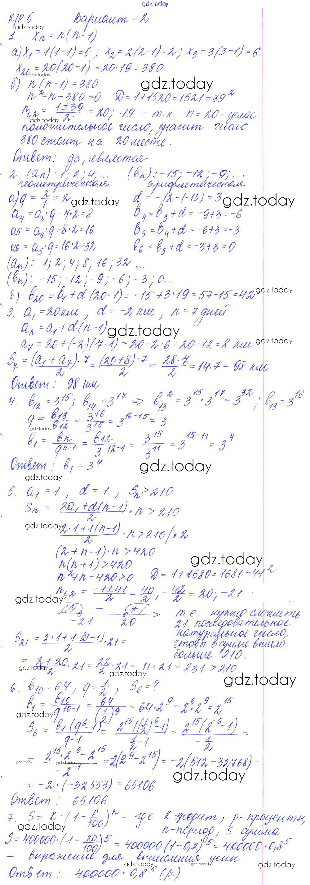 Ответы к Решение к КР-5. Арифметическая и геометрическая прогрессии вариант №2 Контрольным работам по Алгебре для 9 класса Кузнецова, Минаева Просвещение 2016