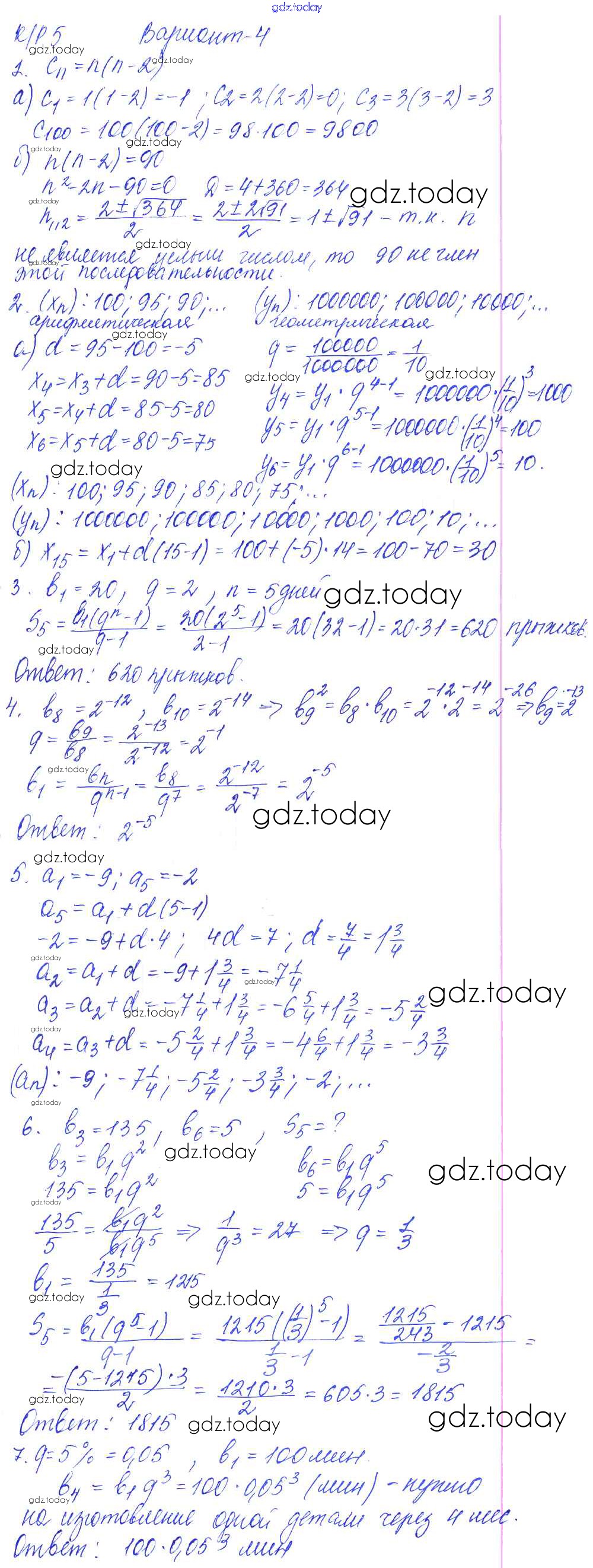 Ответы к Решение к КР-5. Арифметическая и геометрическая прогрессии вариант №4 Контрольным работам по Алгебре для 9 класса Кузнецова, Минаева Просвещение 2016