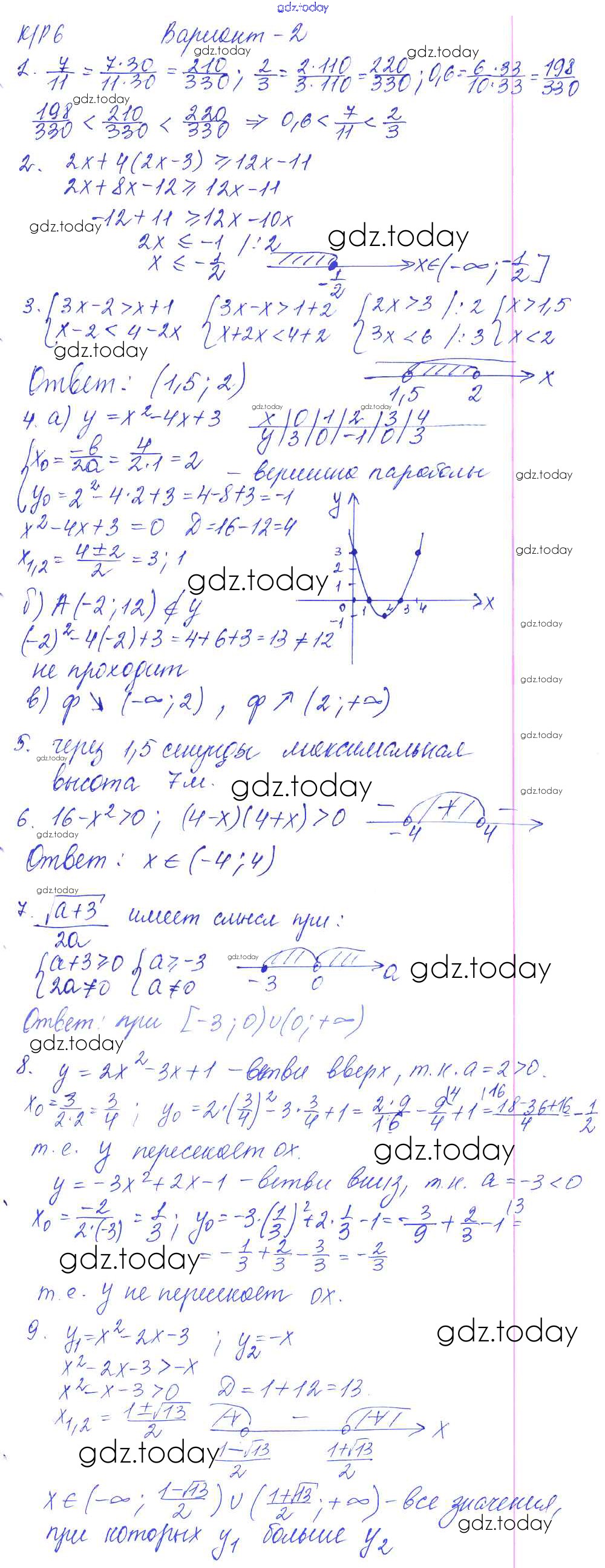 На страницах сайта gdz.today вы найдете учебный и вспомогательный материал, направленный на улучшения знаний школьной программы. ГДЗ - онлайн мир знаний Решение к КР-6. Итоговая работа за первое полугодие вариант №2 Контрольным работам по Алгебре для 9 класса Кузнецова, Минаева Просвещение 2016