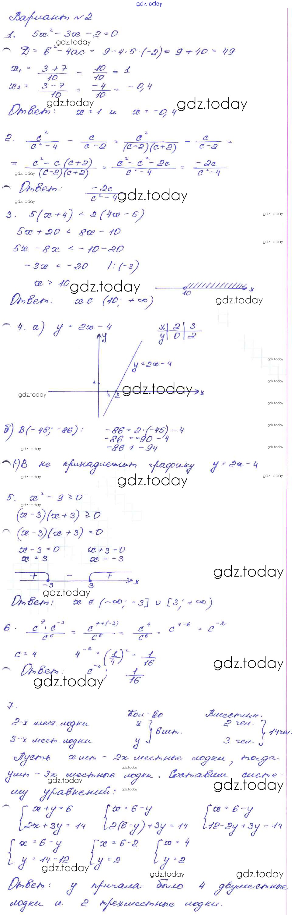 Ответы к Работа 4 Решение к части 1 Вариант-2 Сборнику заданий по Алгебре для 9 класса Кузнецова, Бунимович Дрофа 2008