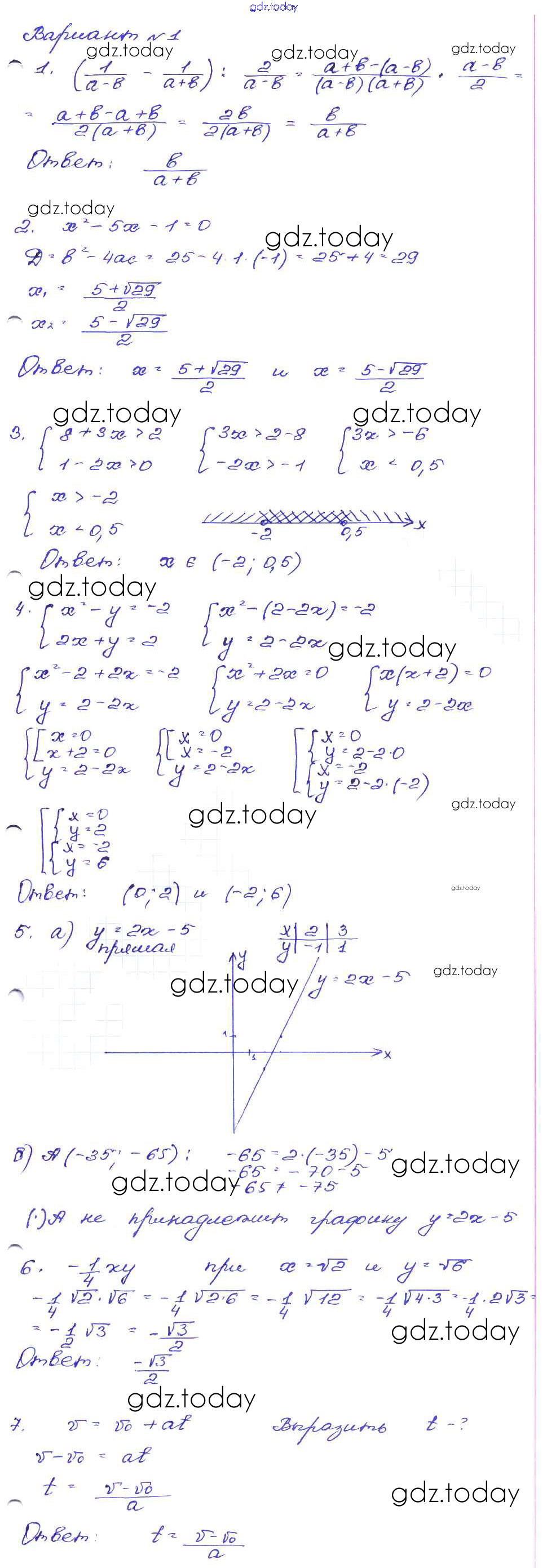 Ответы к Работа 7 Решение к части 1 Вариант-1 Сборнику заданий по Алгебре для 9 класса Кузнецова, Бунимович Дрофа 2008