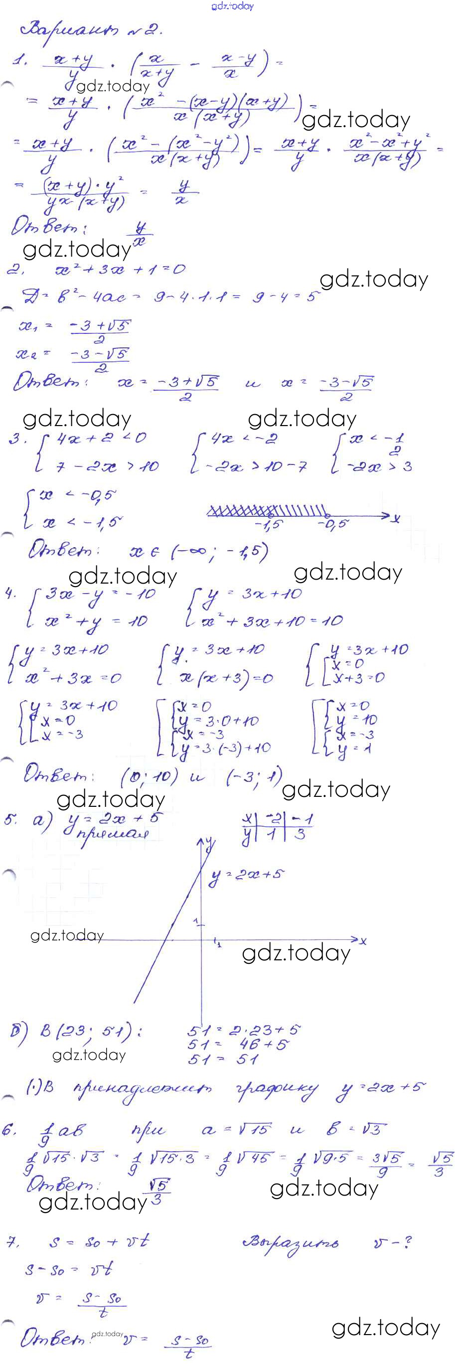 Ответы к Работа 7 Решение к части 1 Вариант-2 Сборнику заданий по Алгебре для 9 класса Кузнецова, Бунимович Дрофа 2008