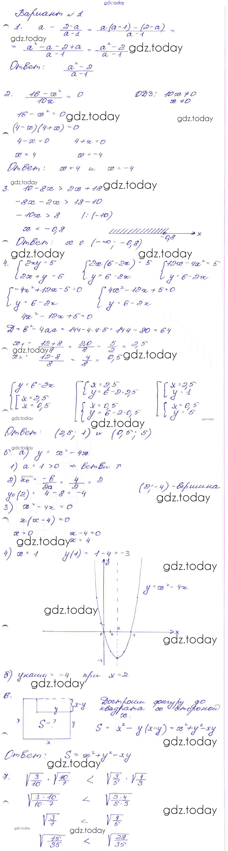 Ответы к Работа 8 Решение к части 1 Вариант-1 Сборнику заданий по Алгебре для 9 класса Кузнецова, Бунимович Дрофа 2008
