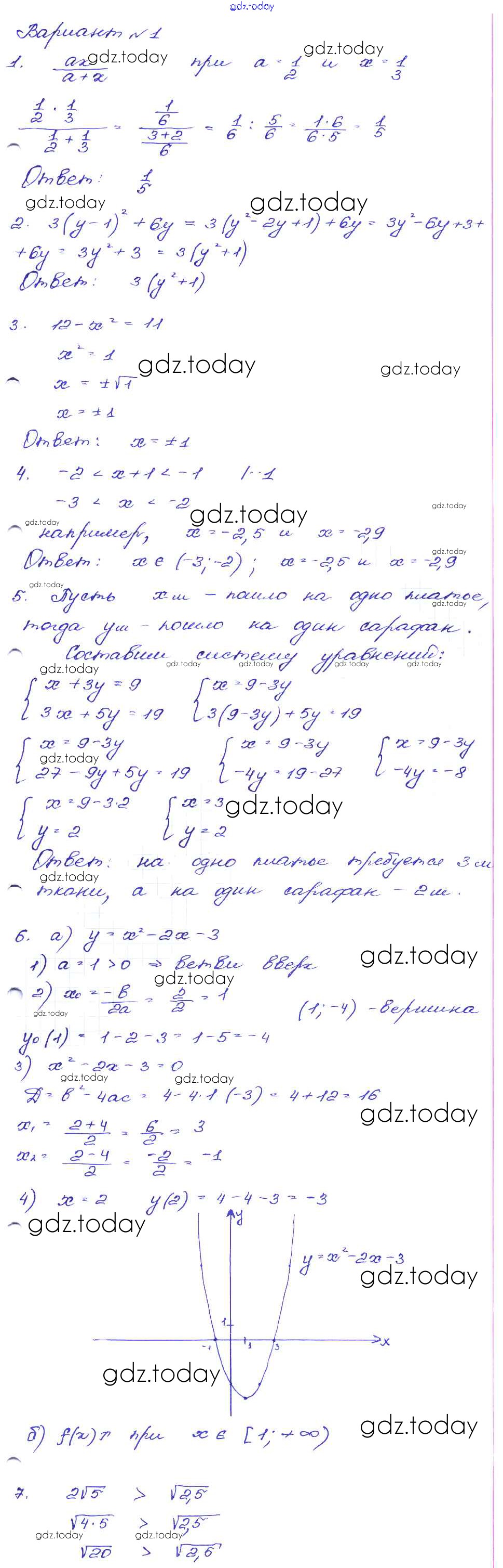 Ответы к Работа 9 Решение к части 1 Вариант-1 Сборнику заданий по Алгебре для 9 класса Кузнецова, Бунимович Дрофа 2008