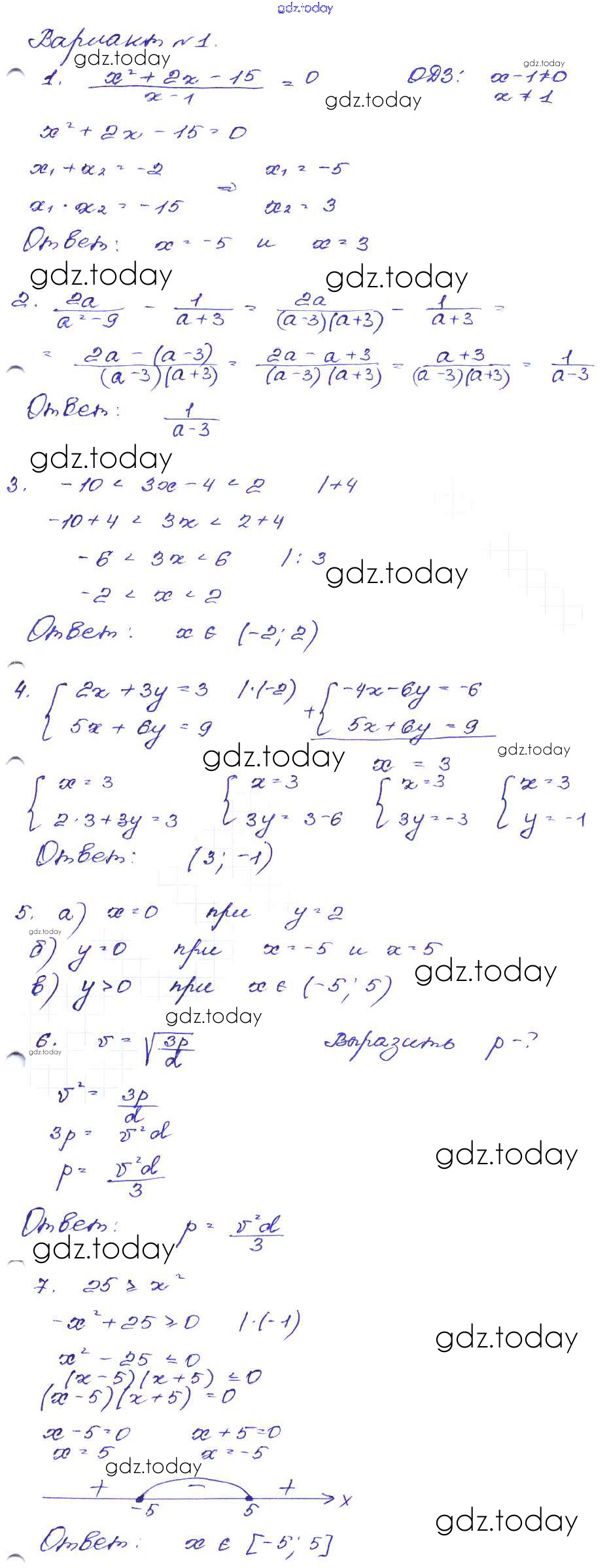 Ответы к Работа 14 Решение к части 1 Вариант-1 Сборнику заданий по Алгебре для 9 класса Кузнецова, Бунимович Дрофа 2008