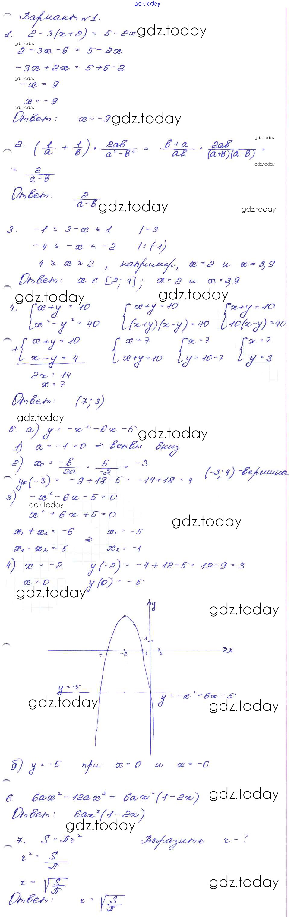 Ответы к Работа 16 Решение к части 1 Вариант-1 Сборнику заданий по Алгебре для 9 класса Кузнецова, Бунимович Дрофа 2008