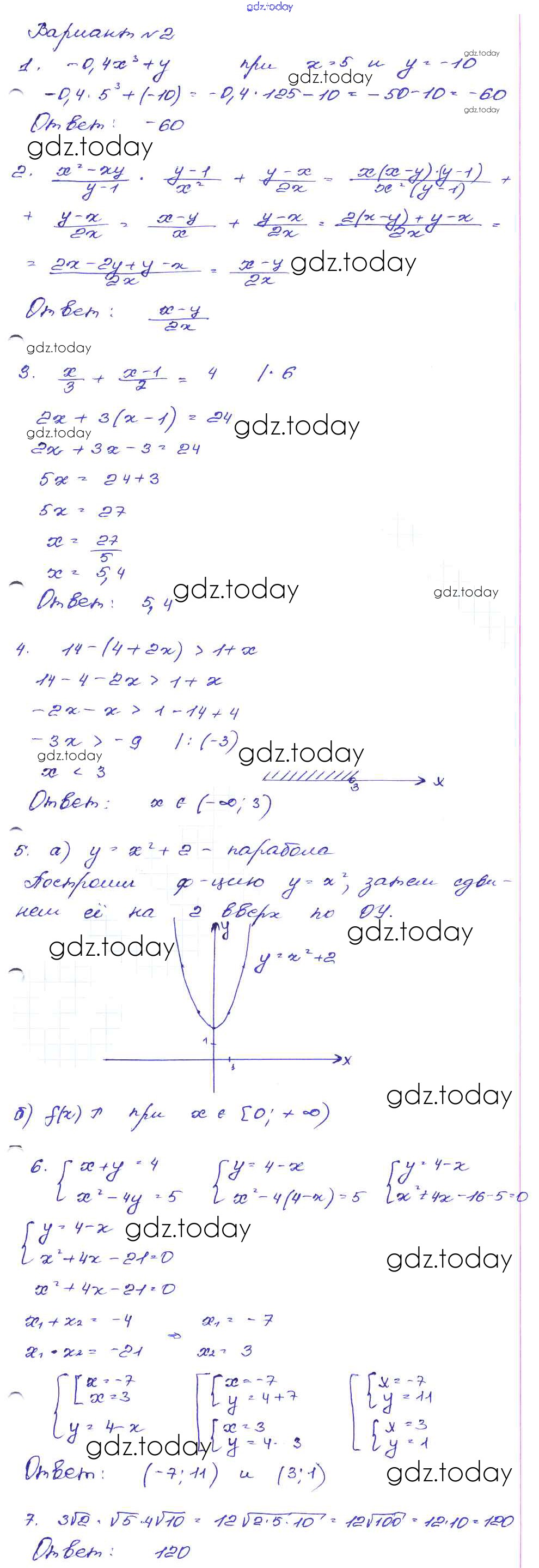 Ответы к Работа 20 Решение к части 1 Вариант-2 Сборнику заданий по Алгебре для 9 класса Кузнецова, Бунимович Дрофа 2008