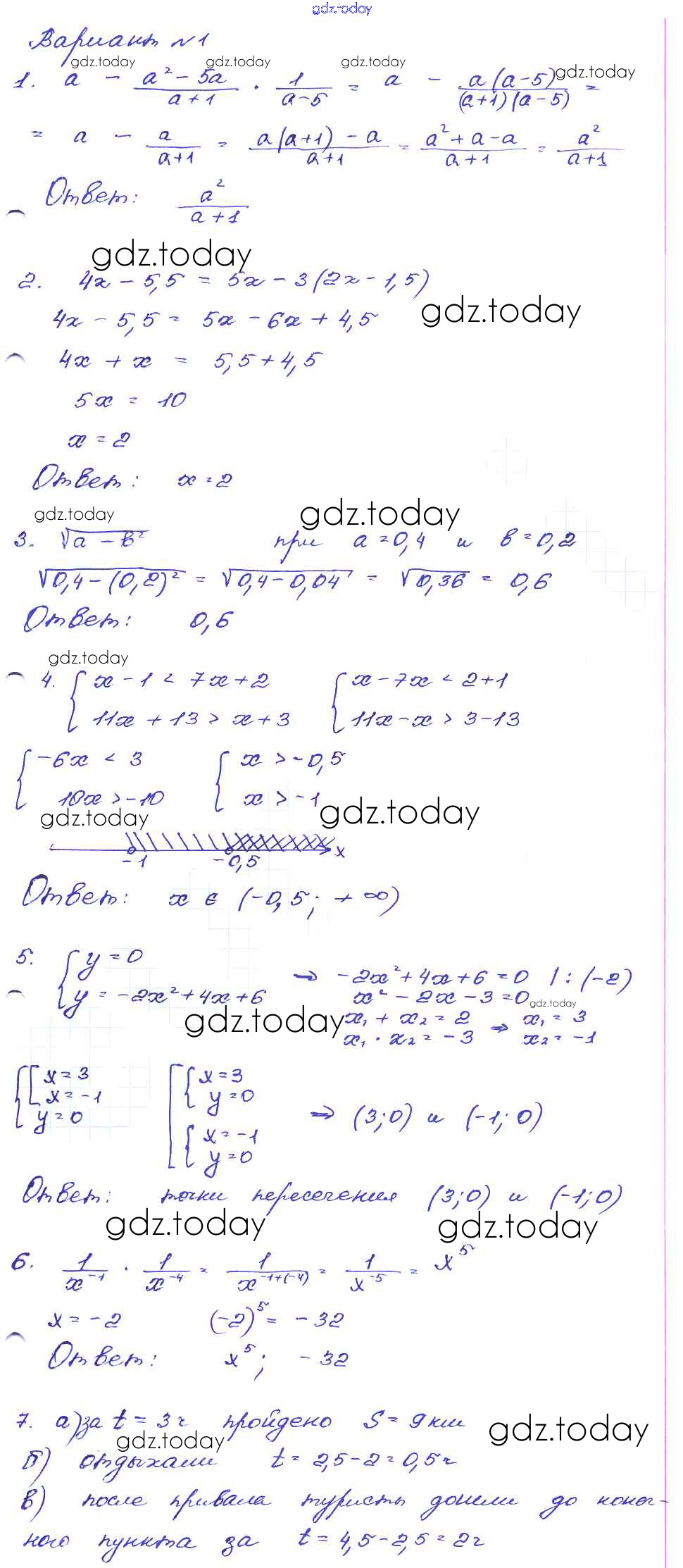 Ответы к Работа 24 Решение к части 1 Вариант-1 Сборнику заданий по Алгебре для 9 класса Кузнецова, Бунимович Дрофа 2008