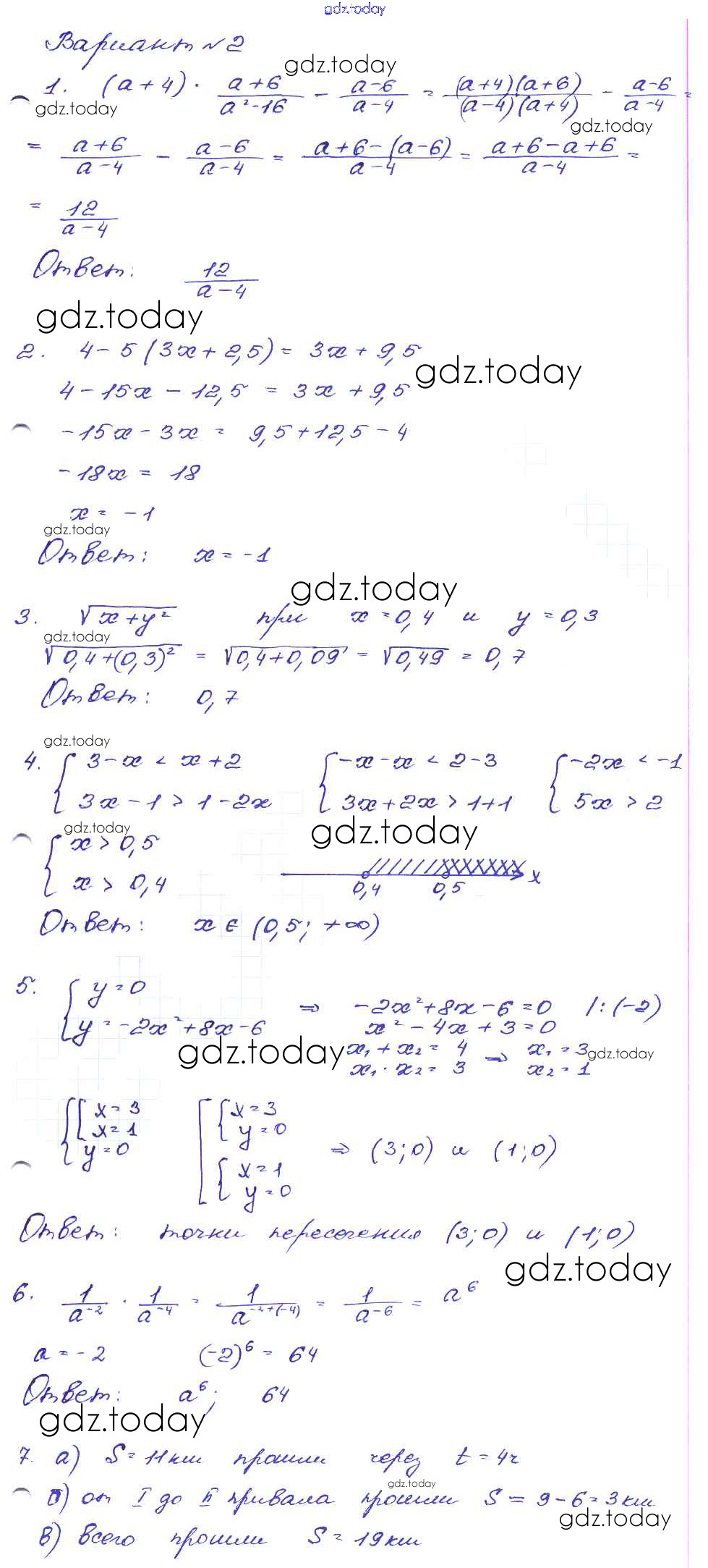 Ответы к Работа 24 Решение к части 1 Вариант-2 Сборнику заданий по Алгебре для 9 класса Кузнецова, Бунимович Дрофа 2008