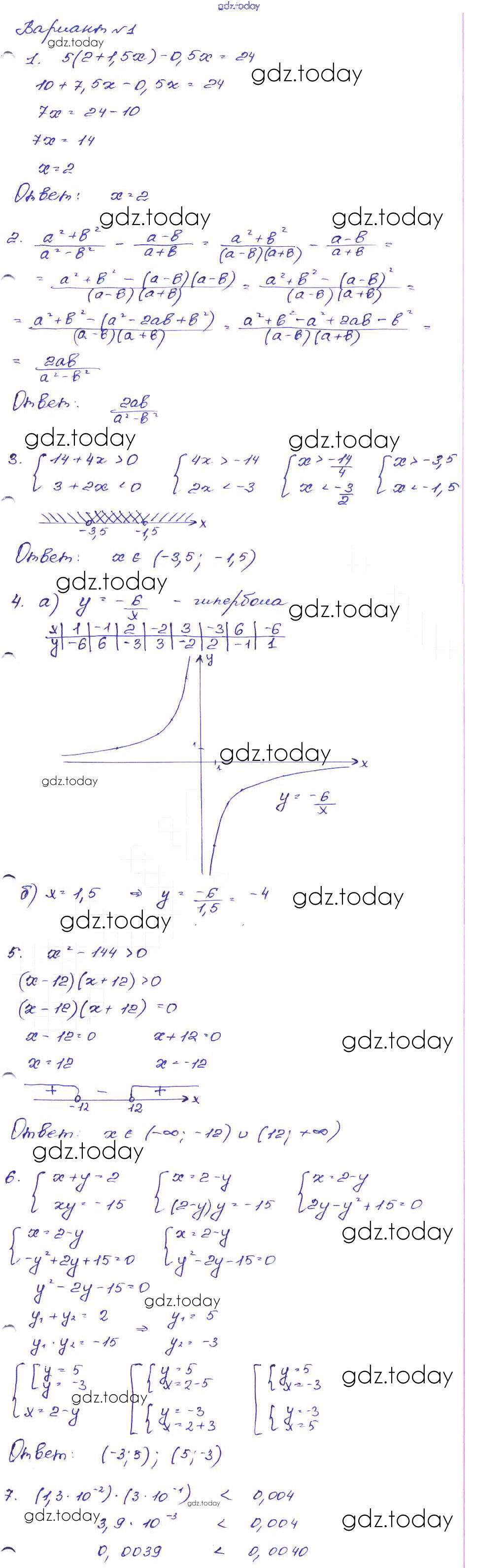 Ответы к Работа 26 Решение к части 1 Вариант-1 Сборнику заданий по Алгебре для 9 класса Кузнецова, Бунимович Дрофа 2008