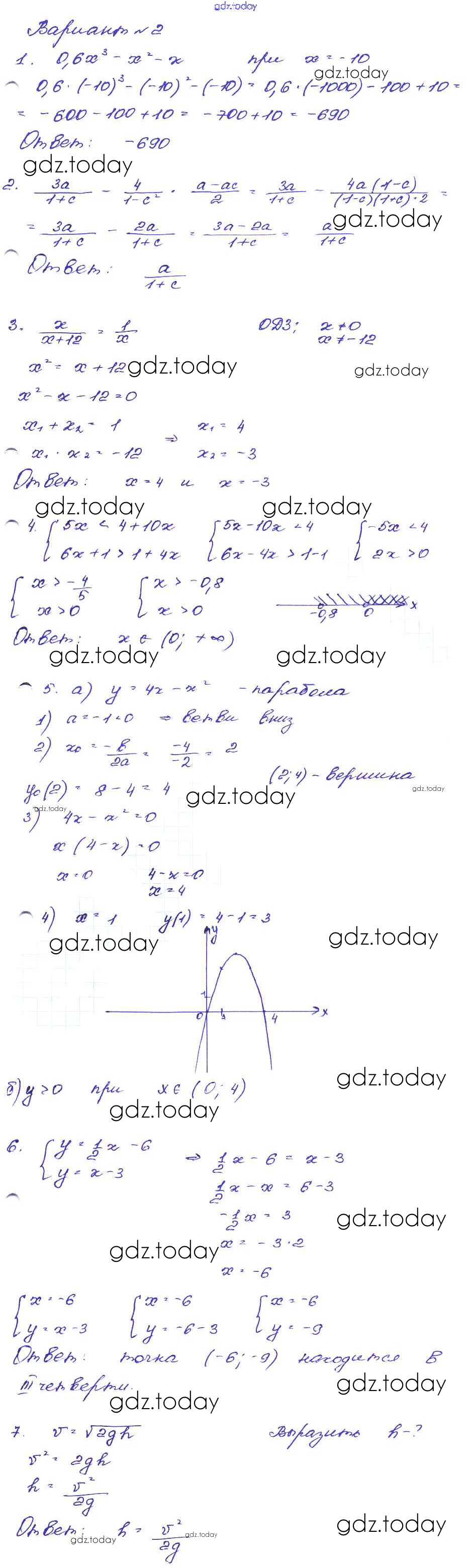 Ответы к Работа 28 Решение к части 1 Вариант-2 Сборнику заданий по Алгебре для 9 класса Кузнецова, Бунимович Дрофа 2008