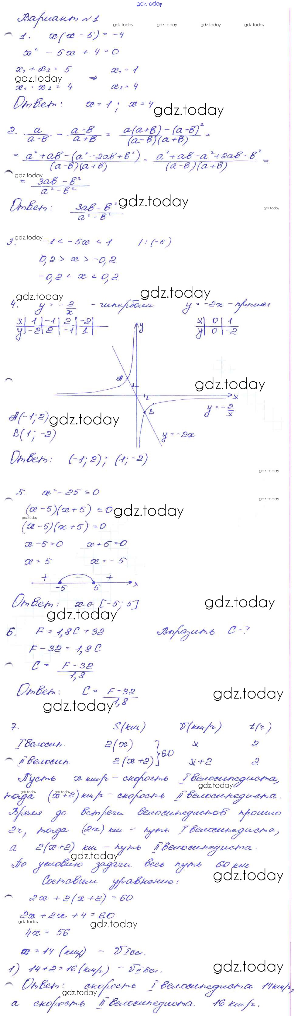 Ответы к Работа 38 Решение к части 1 Вариант-1 Сборнику заданий по Алгебре для 9 класса Кузнецова, Бунимович Дрофа 2008