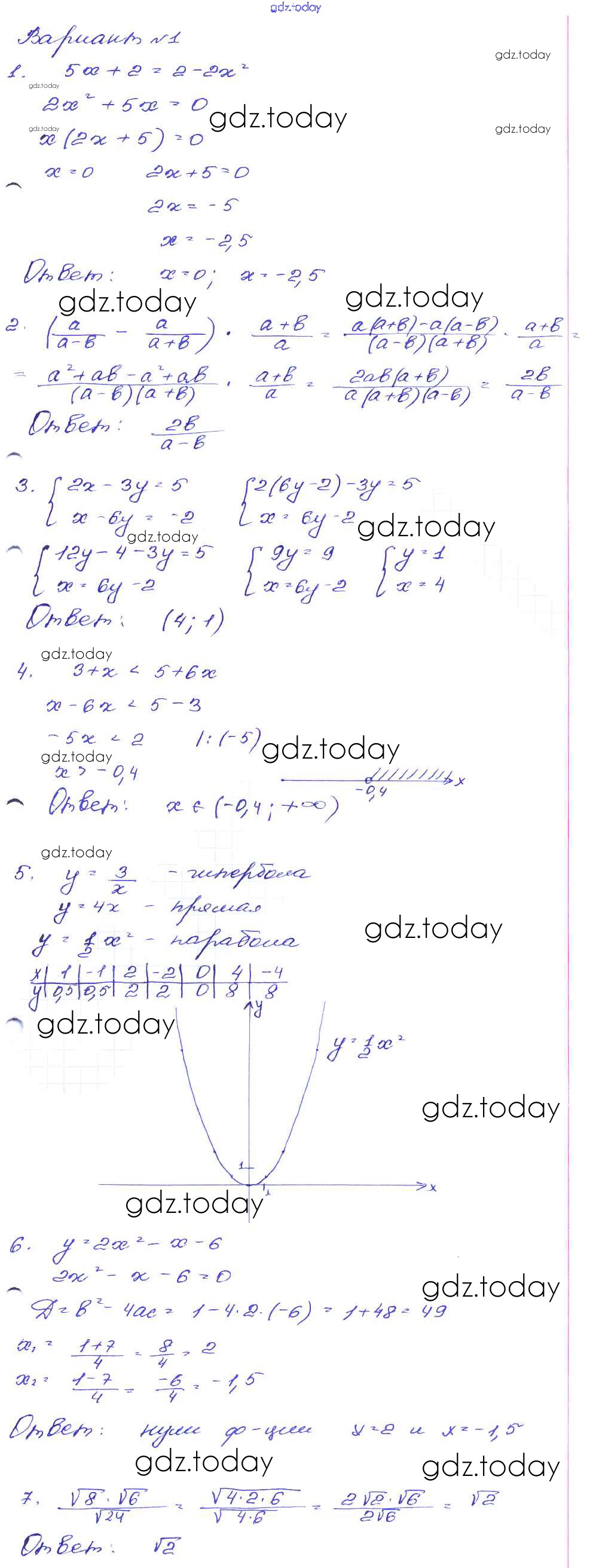 Ответы к Работа 39 Решение к части 1 Вариант-1 Сборнику заданий по Алгебре для 9 класса Кузнецова, Бунимович Дрофа 2008