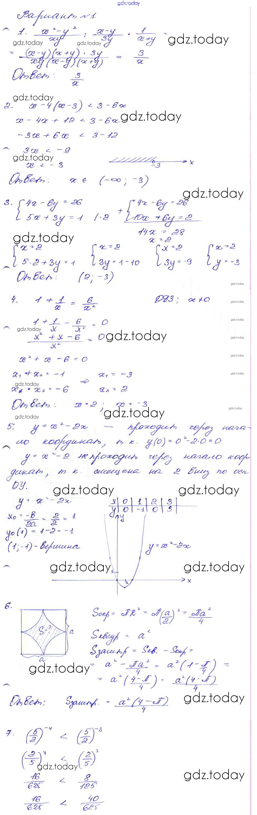 Ответы к Работа 40 Решение к части 1 Вариант-1 Сборнику заданий по Алгебре для 9 класса Кузнецова, Бунимович Дрофа 2008