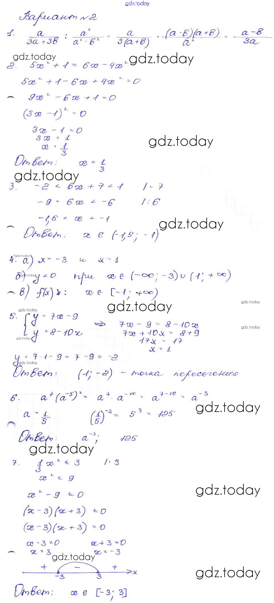 Ответы к Работа 45 Решение к части 1 Вариант-2 Сборнику заданий по Алгебре для 9 класса Кузнецова, Бунимович Дрофа 2008