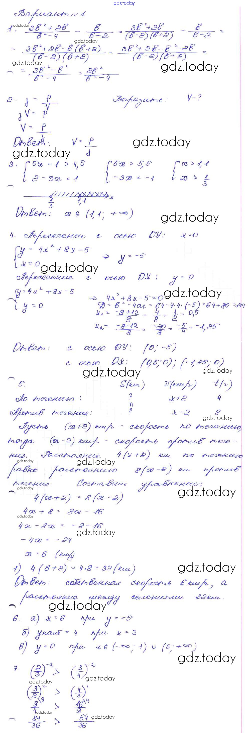 Ответы к Работа 47 Решение к части 1 Вариант-1 Сборнику заданий по Алгебре для 9 класса Кузнецова, Бунимович Дрофа 2008