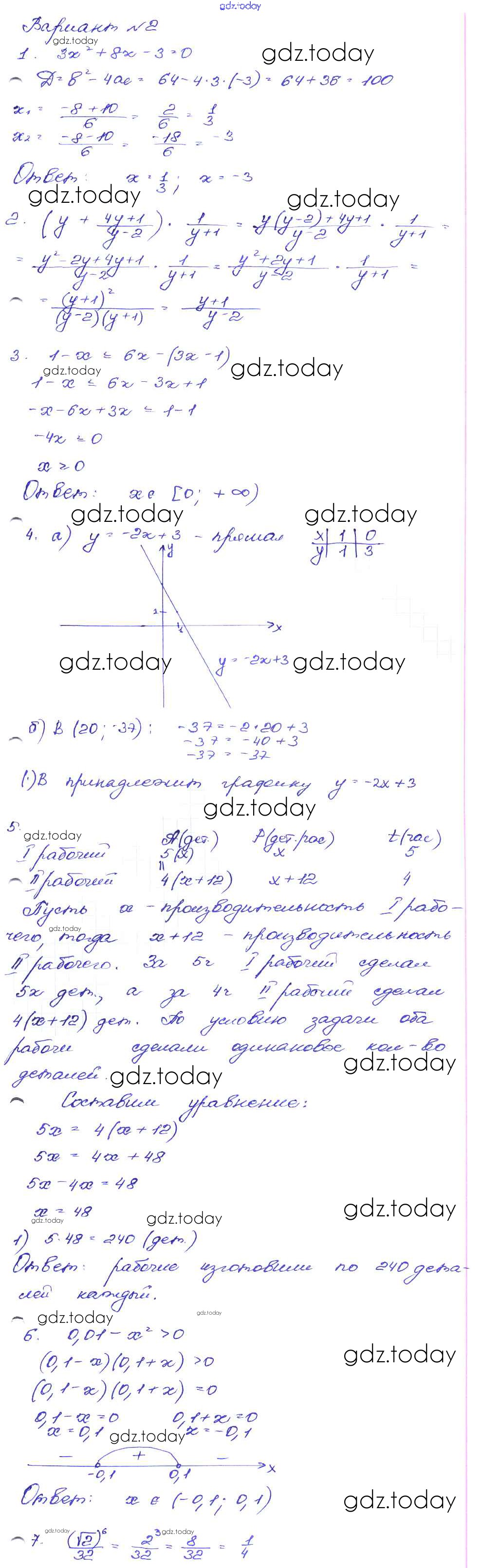 Ответы к Работа 49 Решение к части 1 Вариант-2 Сборнику заданий по Алгебре для 9 класса Кузнецова, Бунимович Дрофа 2008