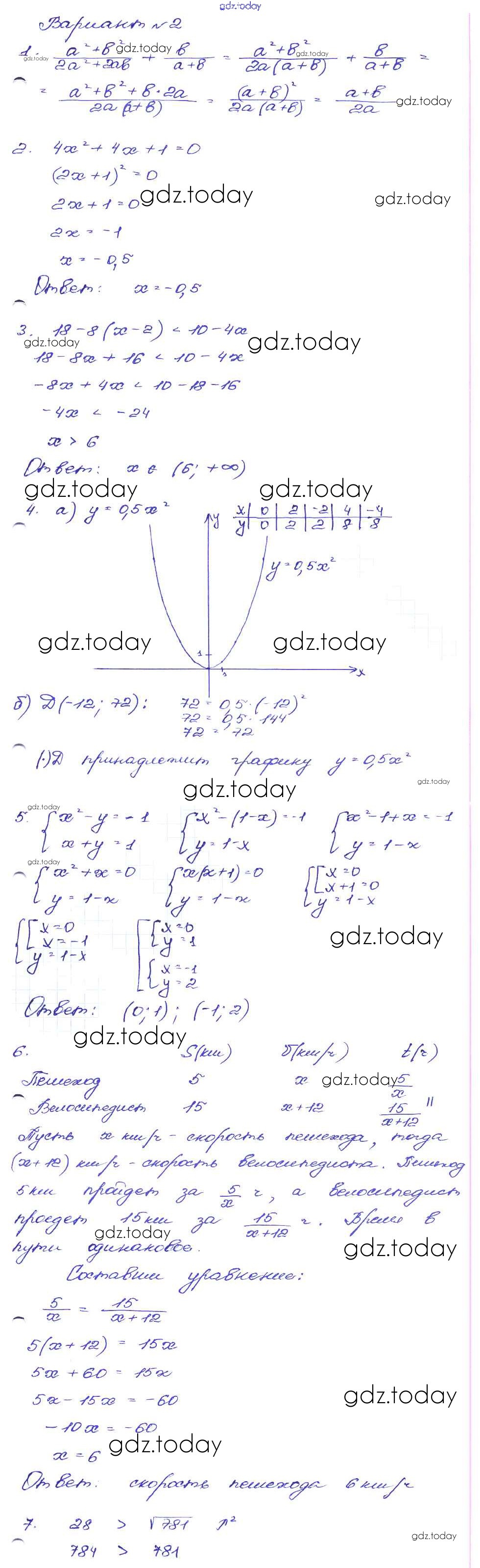 Ответы к Работа 53 Решение к части 1 Вариант-2 Сборнику заданий по Алгебре для 9 класса Кузнецова, Бунимович Дрофа 2008