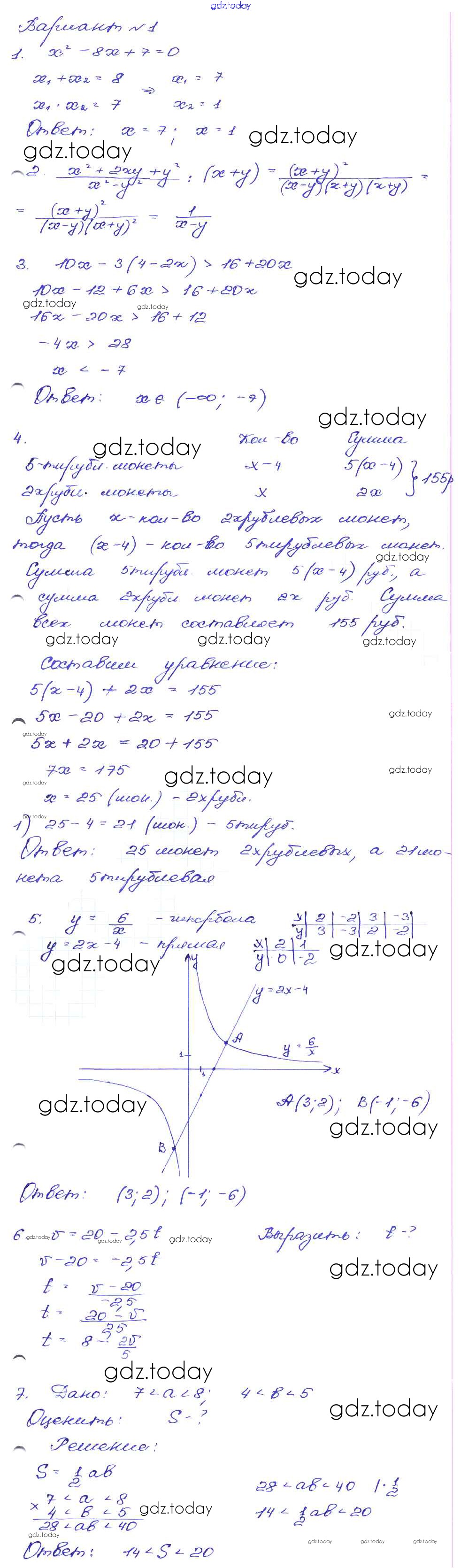 Ответы к Работа 55 Решение к части 1 Вариант-1 Сборнику заданий по Алгебре для 9 класса Кузнецова, Бунимович Дрофа 2008