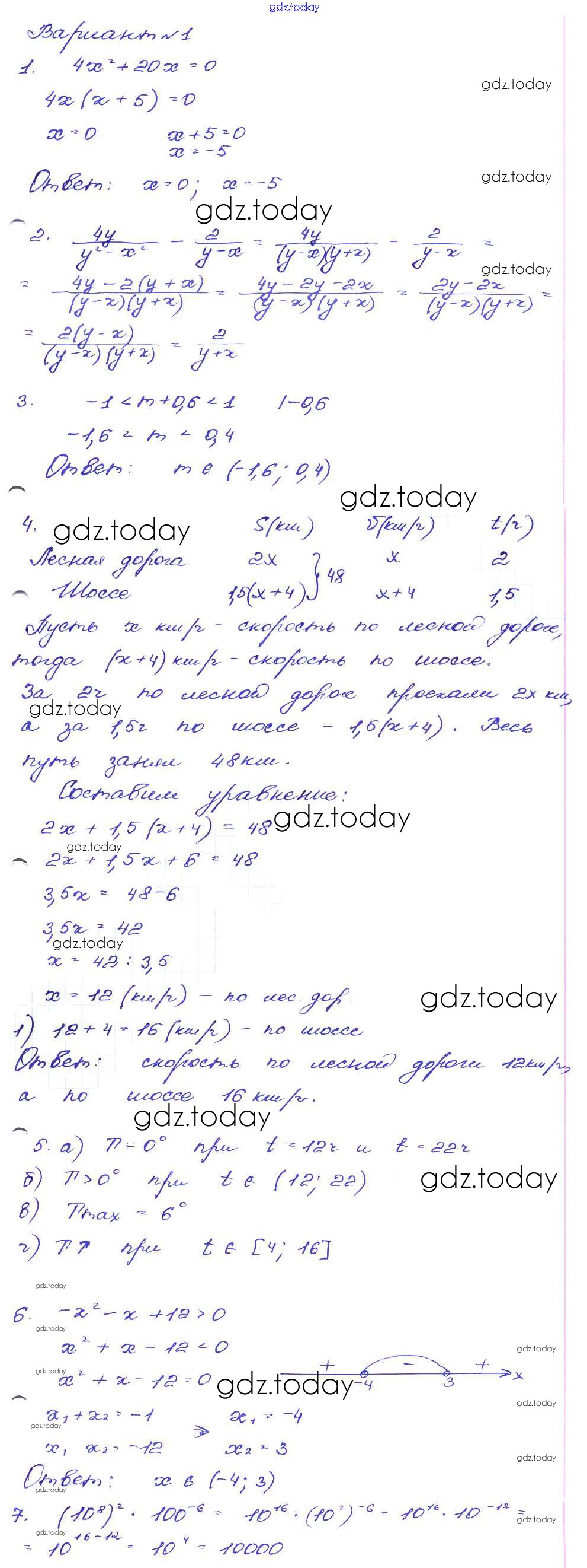 Ответы к Работа 56 Решение к части 1 Вариант-1 Сборнику заданий по Алгебре для 9 класса Кузнецова, Бунимович Дрофа 2008