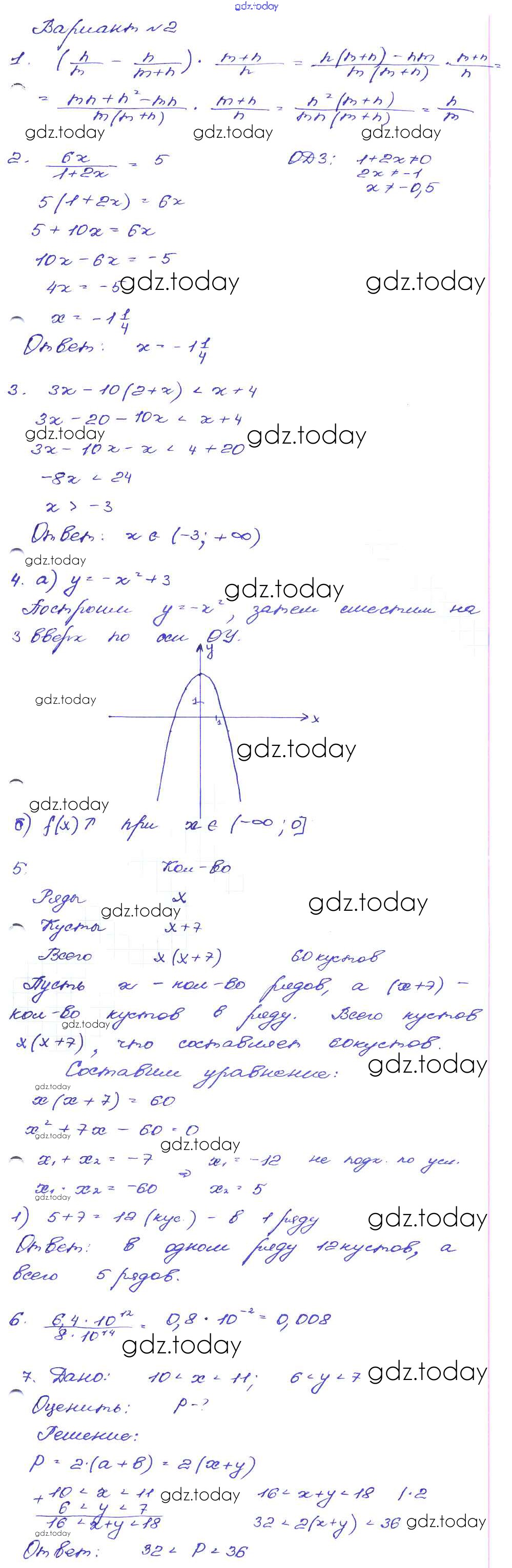 Ответы к Работа 57 Решение к части 1 Вариант-2 Сборнику заданий по Алгебре для 9 класса Кузнецова, Бунимович Дрофа 2008